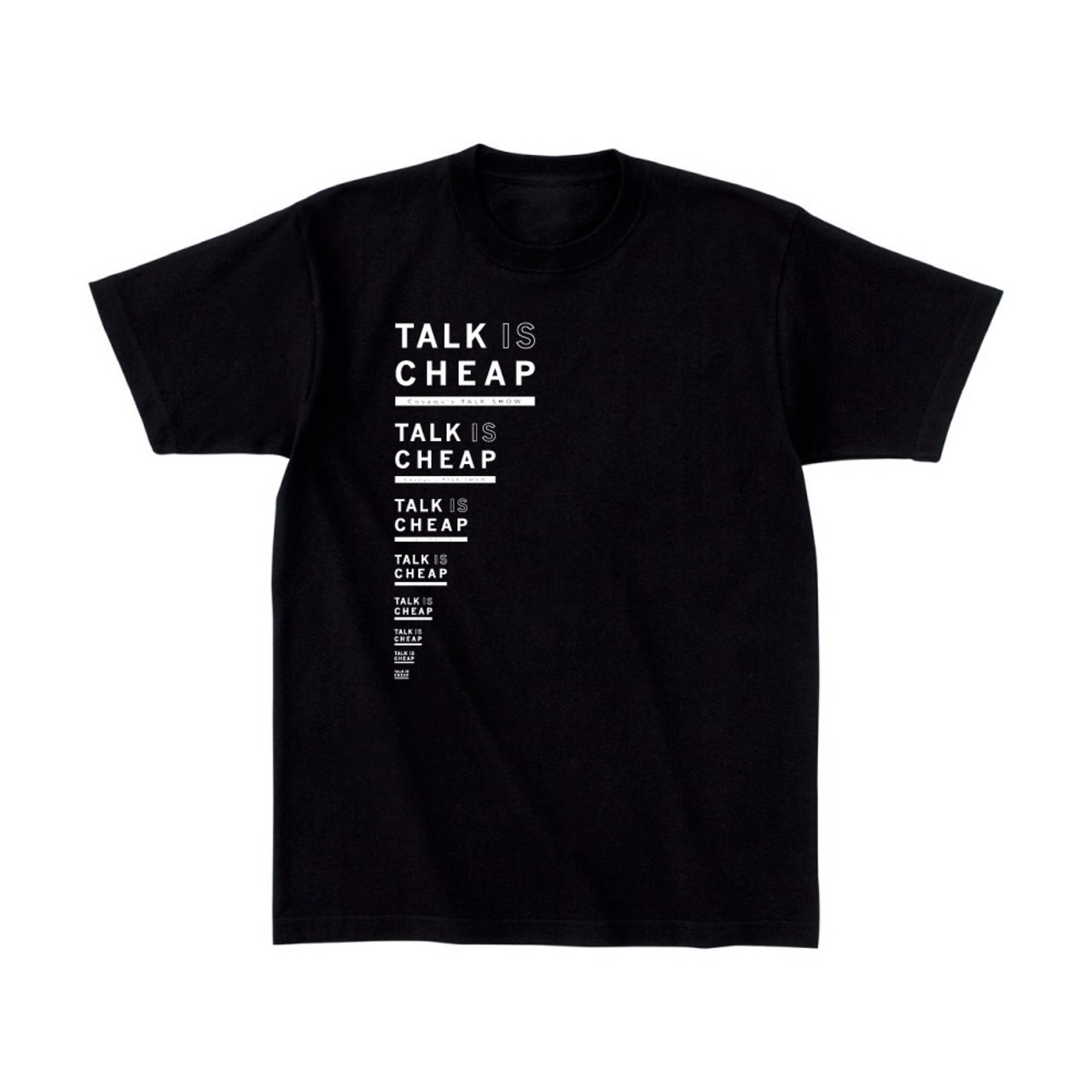ビートメイカー、エンジニアのCosaquのトーク力に焦点を当てたイベント”TALK IS CHEAP"のオフィシャルTee。デザインは大阪北摂の発のクリエイト結社”IKIFUN WORKS"が担当。無口なあなたも急に喋り出す。